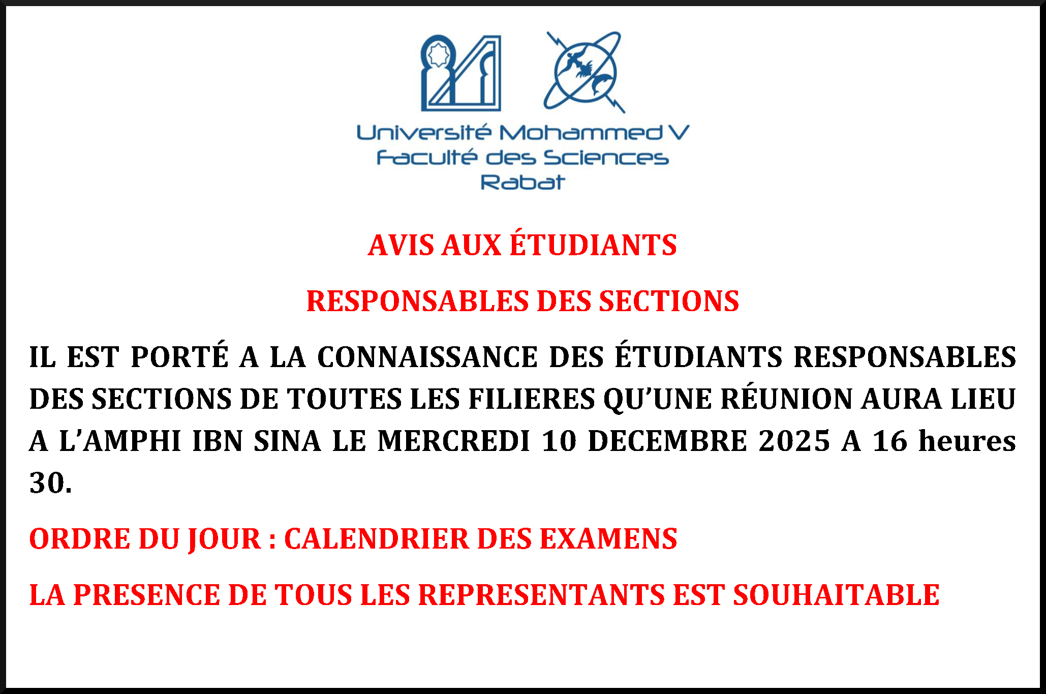 Il est porté a la connaissance des étudiants responsables des sections de toutes les filieres qu’une réunion...