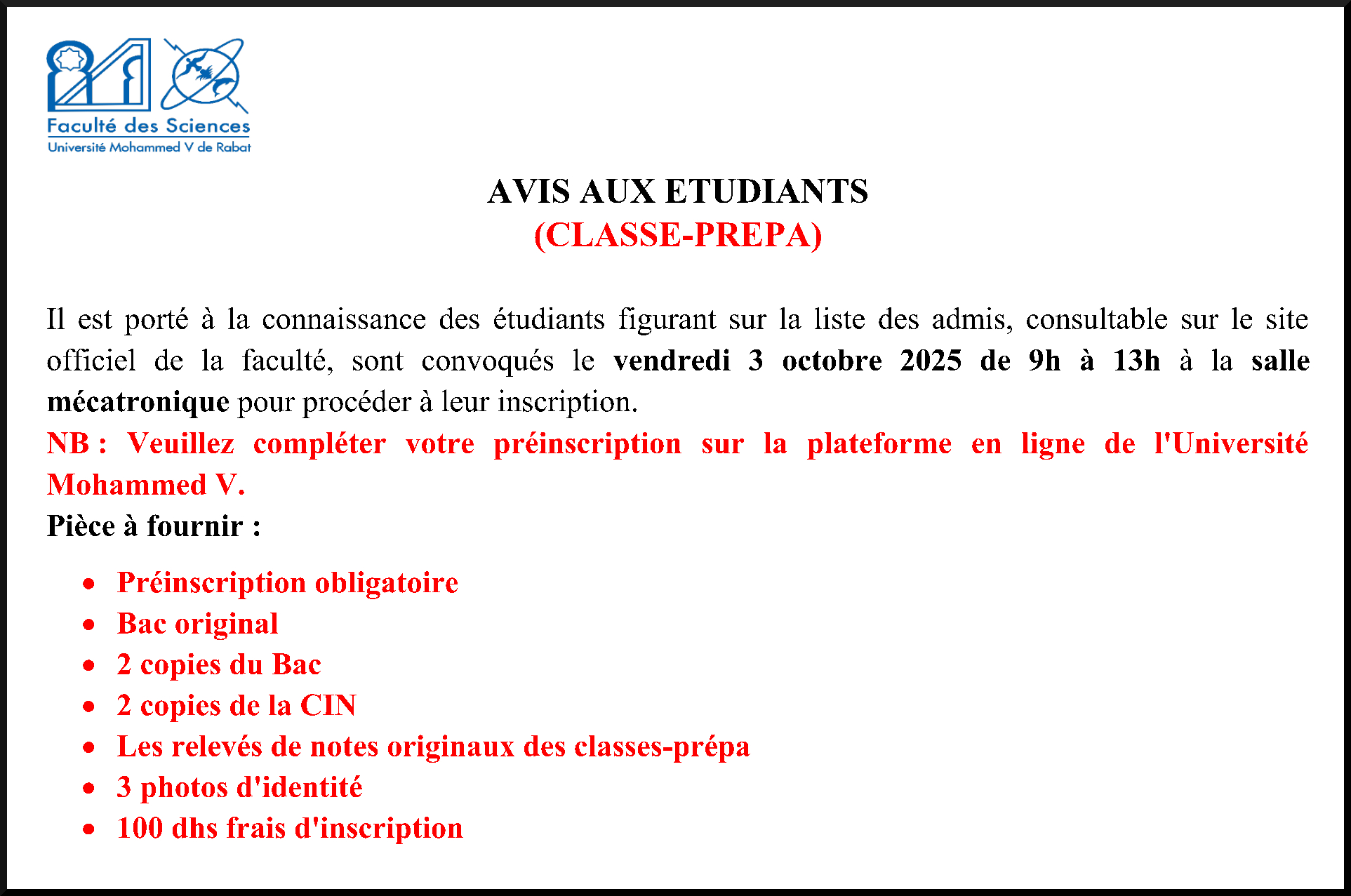 Il est porté à la connaissance des étudiants figurant sur la liste des admis, consultable sur le site officiel de la faculté, sont convoqués.....